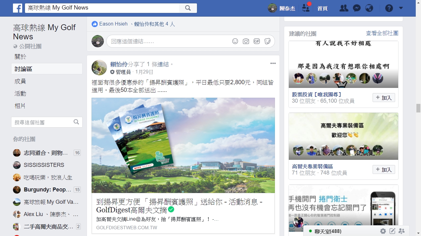 預告文–高爾夫文˙摘臉書粉絲專頁
